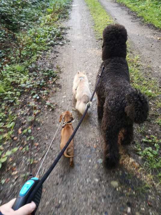 (ein Kind aus unserer Emily vd den Dombergspatzen und Engels Jago), den Terrier und hinten den gestromten Carl-Edgar vd den Wirsitzer Eichen