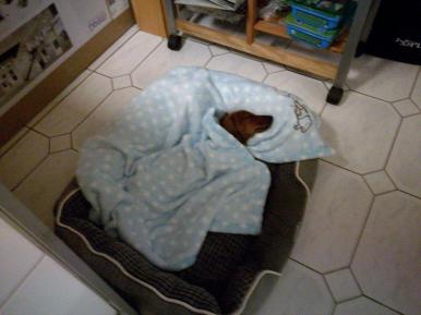 Sina hatte es sich gemütlich gemacht, da entdeckte Tico *Socke vd Wirsitzer Eichen* ebenfalls die Decke und zog und zog und zog. Am Ende hat er es geschafft, plucks, lag die Decke samt Sina auf dem Fußboden. Tico wird nun bald 9 Jahre, aber bei seiner Vitalität und Gesundheit denkt man,