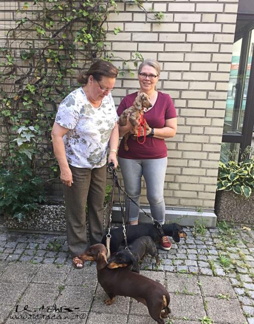 Zito mit seinen Besitzern. Der schwarz-rote Rüde ist jetzt 14 Monate und hat sich zu einem wunderschönen Jungrüden entwickelt, das muss ich mal so sagen. Wir saßen einige Zeit beisammen und die Dackel hatten ihren Spaß !