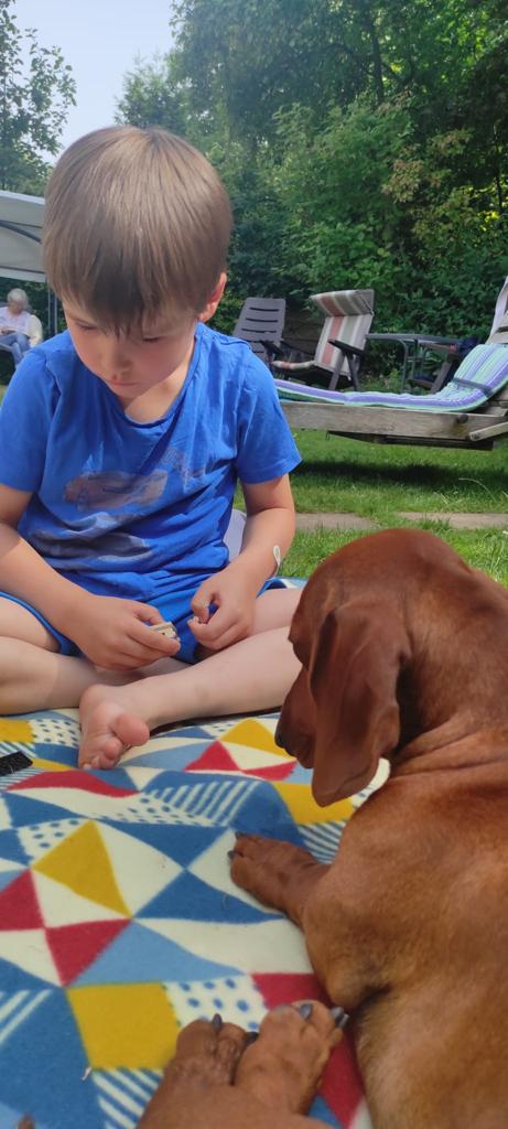 Wir verbrachten zusammen schöne Stunden. Besonders seine Schwester Ida hat sich gefreut. Hurra, endlich ein Kumpel zum Toben und Raufen. Vielen Dank für die schönen Bilder, die gemacht wurden.
