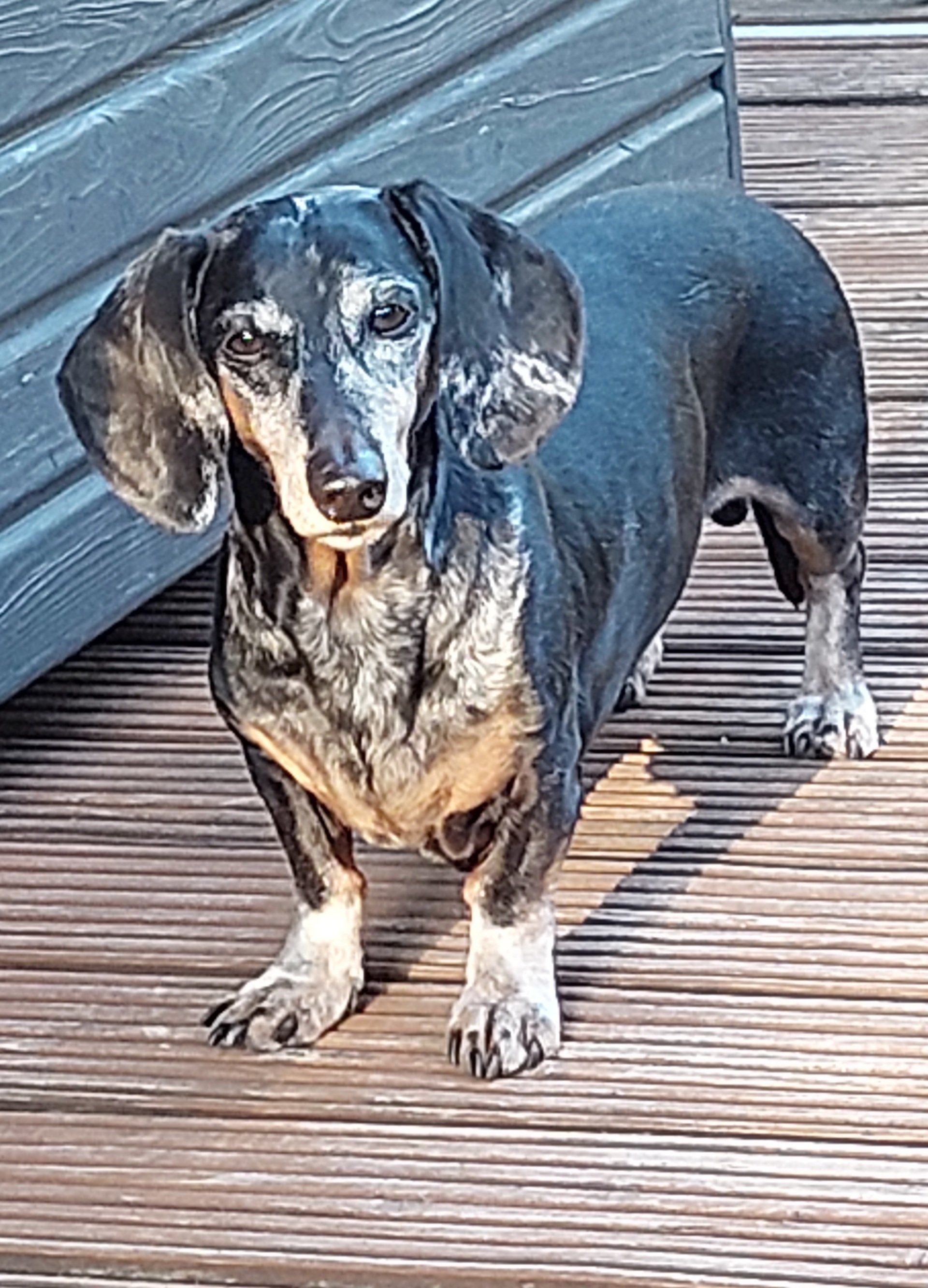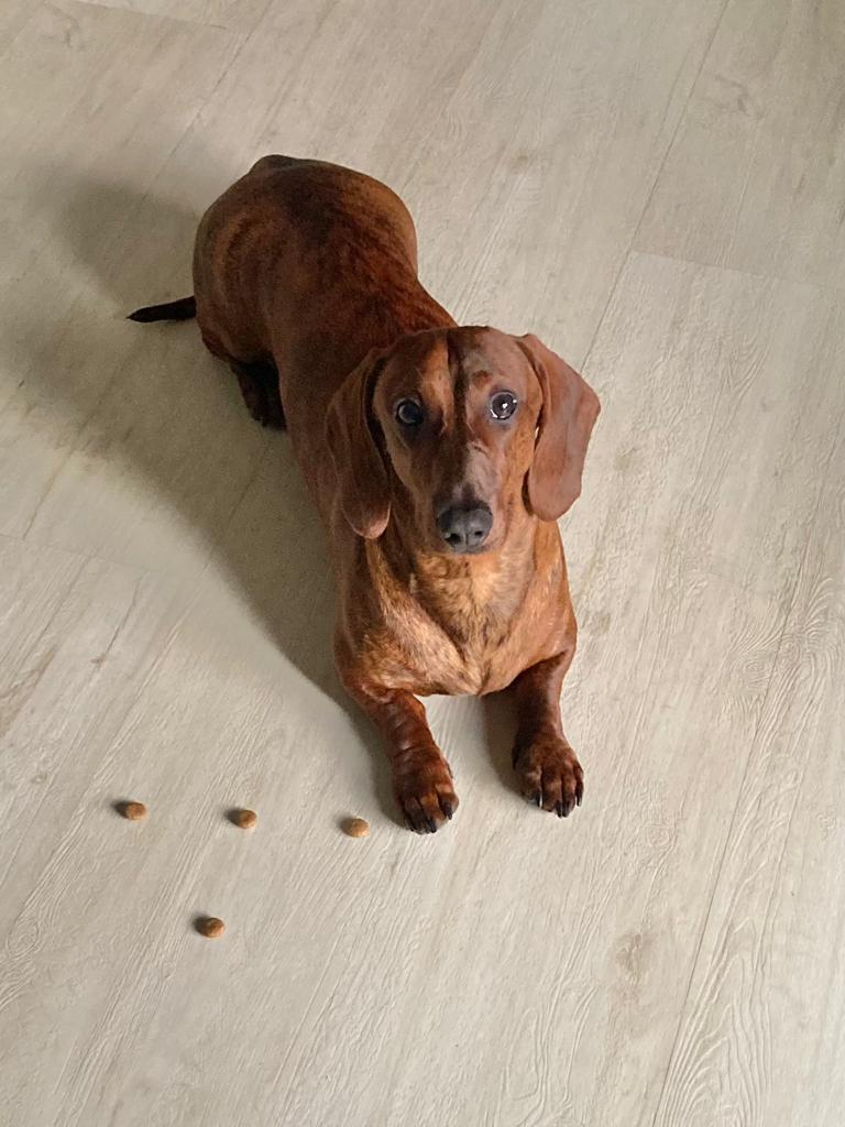 Er macht nun Mantrailing, eine hervorragende Möglichkeit den Teckel zu beschäftigen. Frauchen schreibt macht er sehr gut.