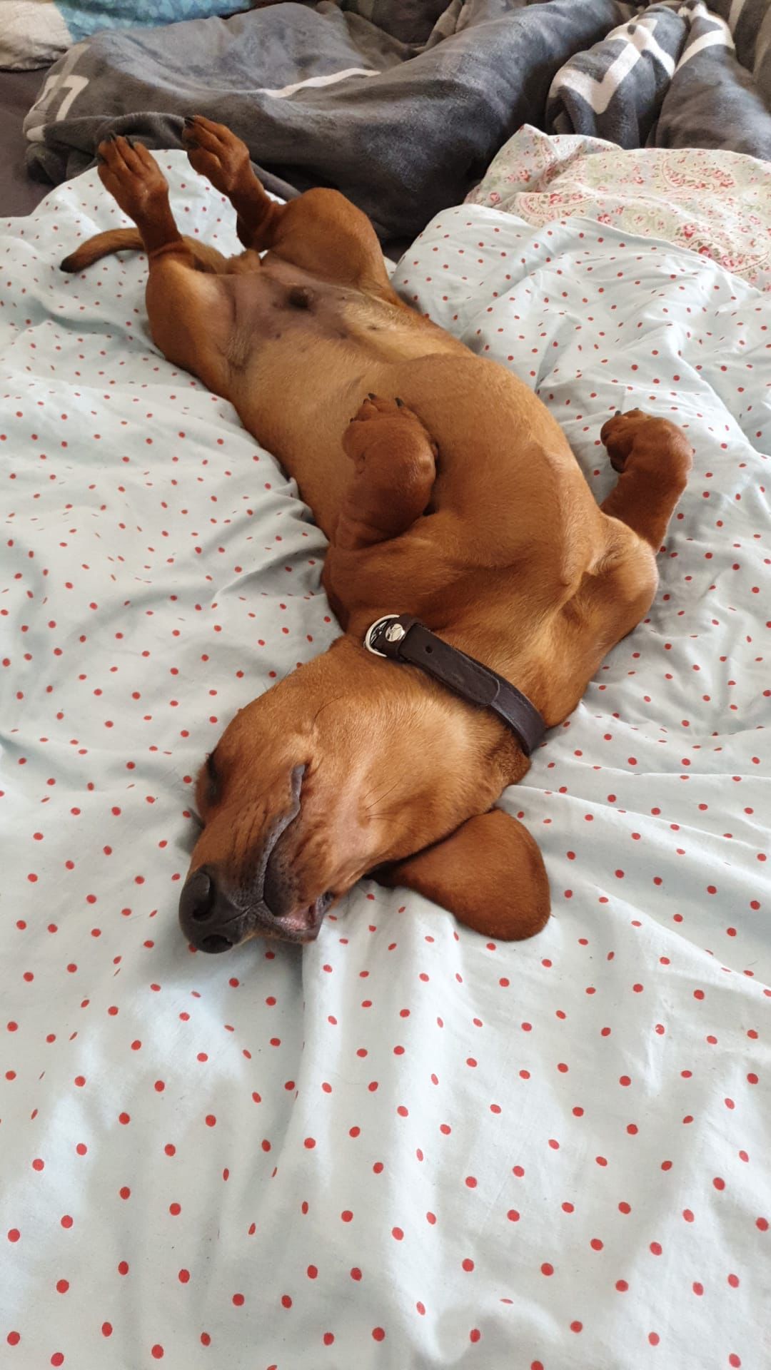 durfte heute früh bei seiner Familie im Bett kuscheln, guckt mal wie er lacht!!