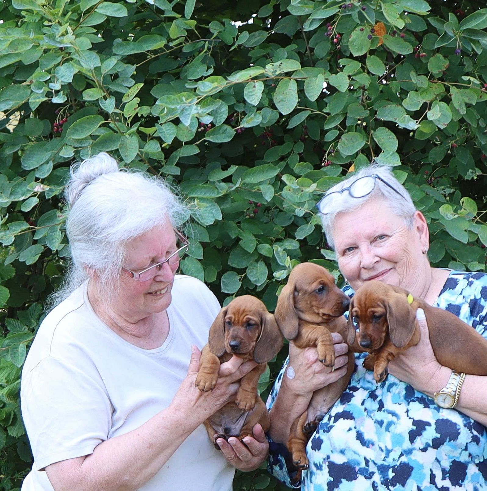 Es ist, da bin ich mir sicher, auch im Sinne von Detlef, dass ich mit meiner Freundin Ulrike Cohrs eine Zwingergemeinschaft eingegangen bin. Sie ist von Kindheit an mit Teckeln aufgewachsen, ihr Großvater war Jäger und hatte immer neben einer Heidewachstel (kleiner Münsterländer) einen roten Kurzhaarteckel an seiner Seite. So entwickelte sich bei Ulrike der Wunsch, es mit den Teckeln weiter zu halten. Heute besitzt sie selbst zwei Rüden, zum einen Socke vd Wirsitzer Eichen und Achtern Diek's Butzemann und ist seit 12 Würfen immer unterstützend an meiner Seite.