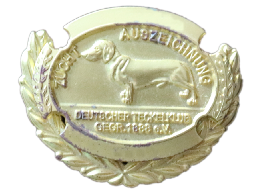 Der DTK zeichnete unseren Zwinger im März 1989 mit der Zuchtauszeichnung in Silber aus. Die goldene Züchternadel für den Gebrauch haben wir erst 2007 beantragt, obwohl die Bedingungen schon seit 1991 erfüllt waren. Irgendwie ist das einfach bei uns liegengeblieben. Die Urkunde wurde vom Teckelklub am 31.1.2007 ausgestellt.